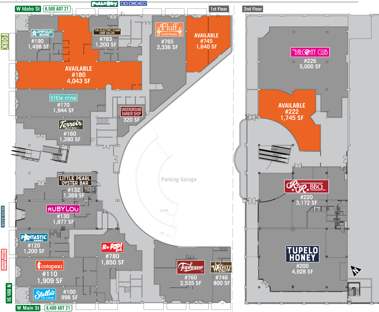 Main + Marketplace is a 2-story retail center located in the hub of activity in downtown Boise on 8th Street between Idaho and Main Streets. 8th Street is commonly referred to as “Restaurant Row” with a number of great local and regional restaurant concepts, vibrant patio seating, and a hip day-into-night vibe.